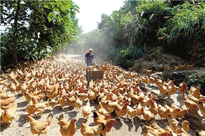 通過多方請教、學(xué)習(xí),他摸索出一套“雞打工,燈滅蟲,鵝除草”的種養(yǎng)結(jié)合模式,節(jié)約不少人工。