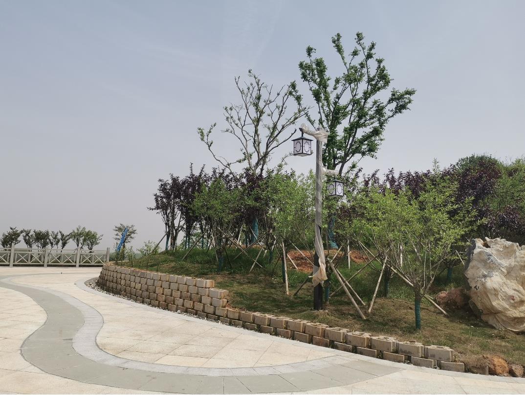 生態(tài)公園里一些低洼處,則被打造成水景旱溪,以三國故事“群英會”為靈感,栽植決明子、刺槐、櫸樹等40種以上喬灌木,以樹喻人,打造多品種植物園。