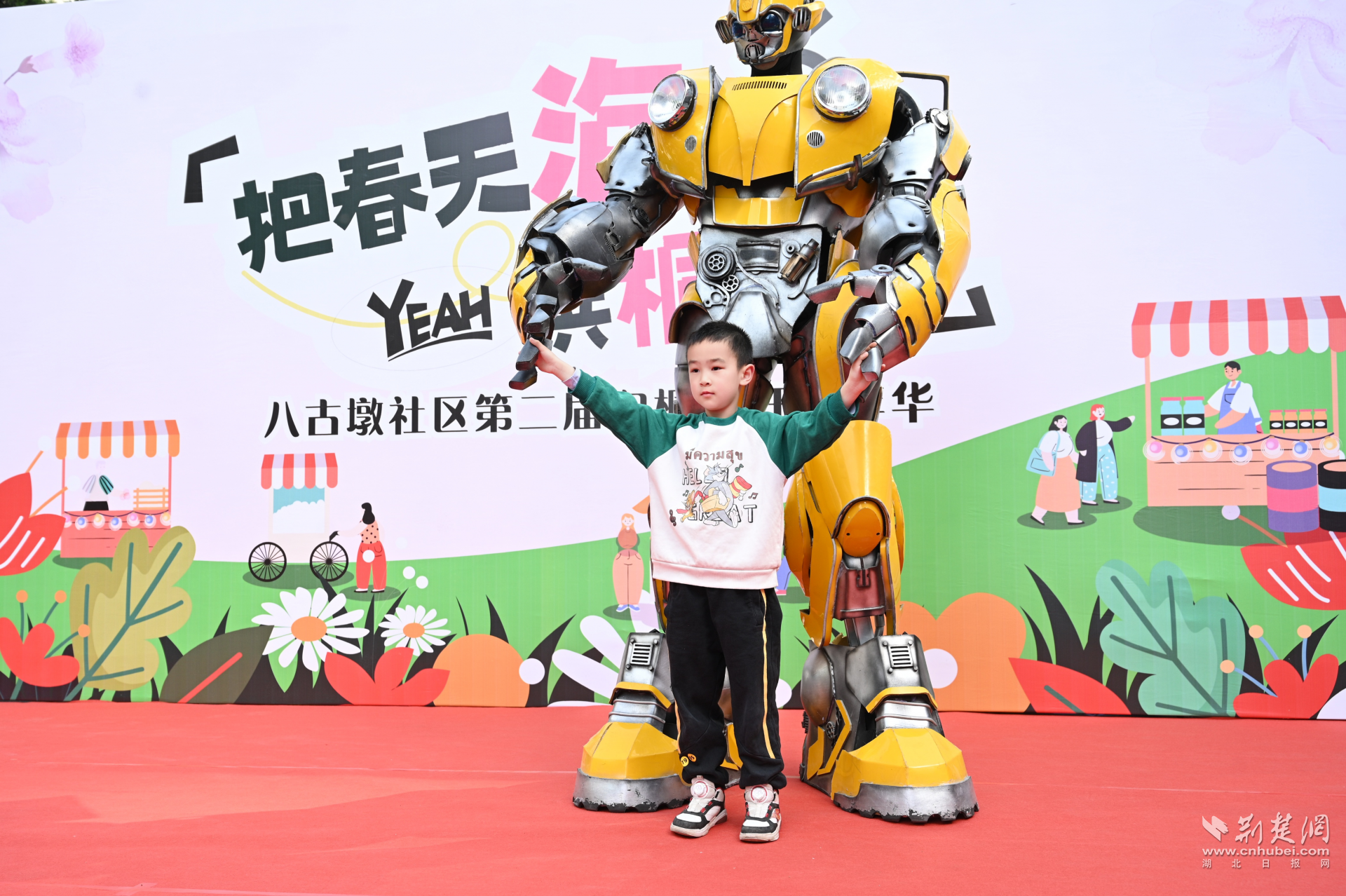 全民共建聚合力?;顒踊I備階段,社區(qū)黨委充分發(fā)揮居民議事會作用,發(fā)動30余名居民志愿者成立策展專班。轄區(qū)居民羅先生主動請纓,免費贊助大黃蜂機器人、小丑巡游等氛圍裝置,并與社區(qū)文藝團隊自編自演的5支主題舞蹈形成創(chuàng)意碰撞。當三米高的炫酷機器人牽手小丑姑娘巡游時,現(xiàn)場瞬間化作歡樂海洋,居民們爭相與巡游隊伍合影,自發(fā)在朋友圈發(fā)起“泡桐花下的奇遇”話題互動,活動未半已收獲上百人次線上傳播。
