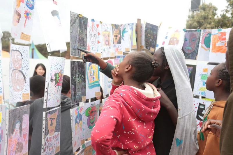 近800名當(dāng)?shù)貎和ㄟ^面具、編織、雕塑、繪畫等多種形式,共同創(chuàng)作了本次主題藝術(shù)展。這些作品不僅是美的呈現(xiàn),更是社區(qū)堅韌生命力的宣言。其中,一幅幅以火車為主題的繪畫,是孩子們送給中國路橋“非洲之星”公益項目的一份特殊“禮物”,感謝其修建的蒙內(nèi)鐵路為當(dāng)?shù)貛淼母淖兣c希望。