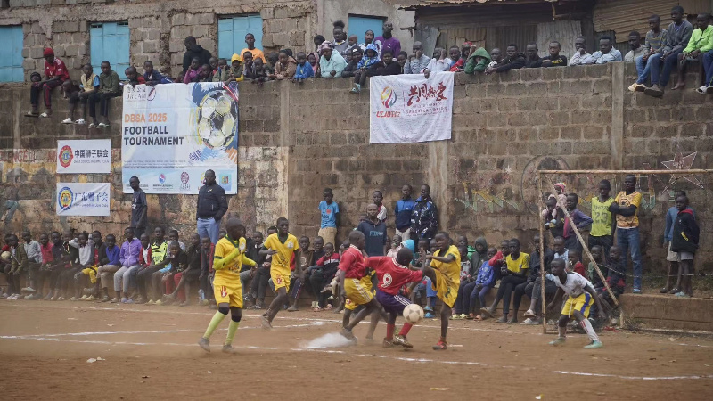 作為傳統(tǒng)重頭戲,本屆足球賽事的規(guī)模再創(chuàng)新高,共有24所社區(qū)學(xué)校的47支隊伍,在 94場激烈角逐后決出勝負(fù)。決賽現(xiàn)場氣氛熱烈,座無虛席。中國駐肯尼亞大使館在賽后舉辦的趣味“顛球比賽”環(huán)節(jié)更是吸引了眾多高手一展身手。