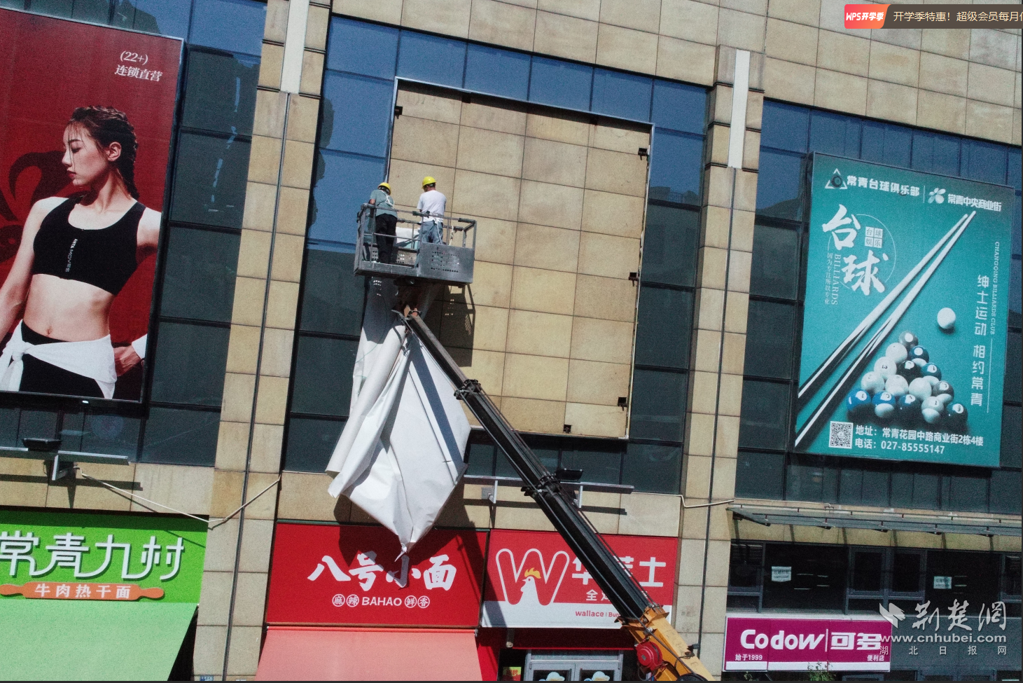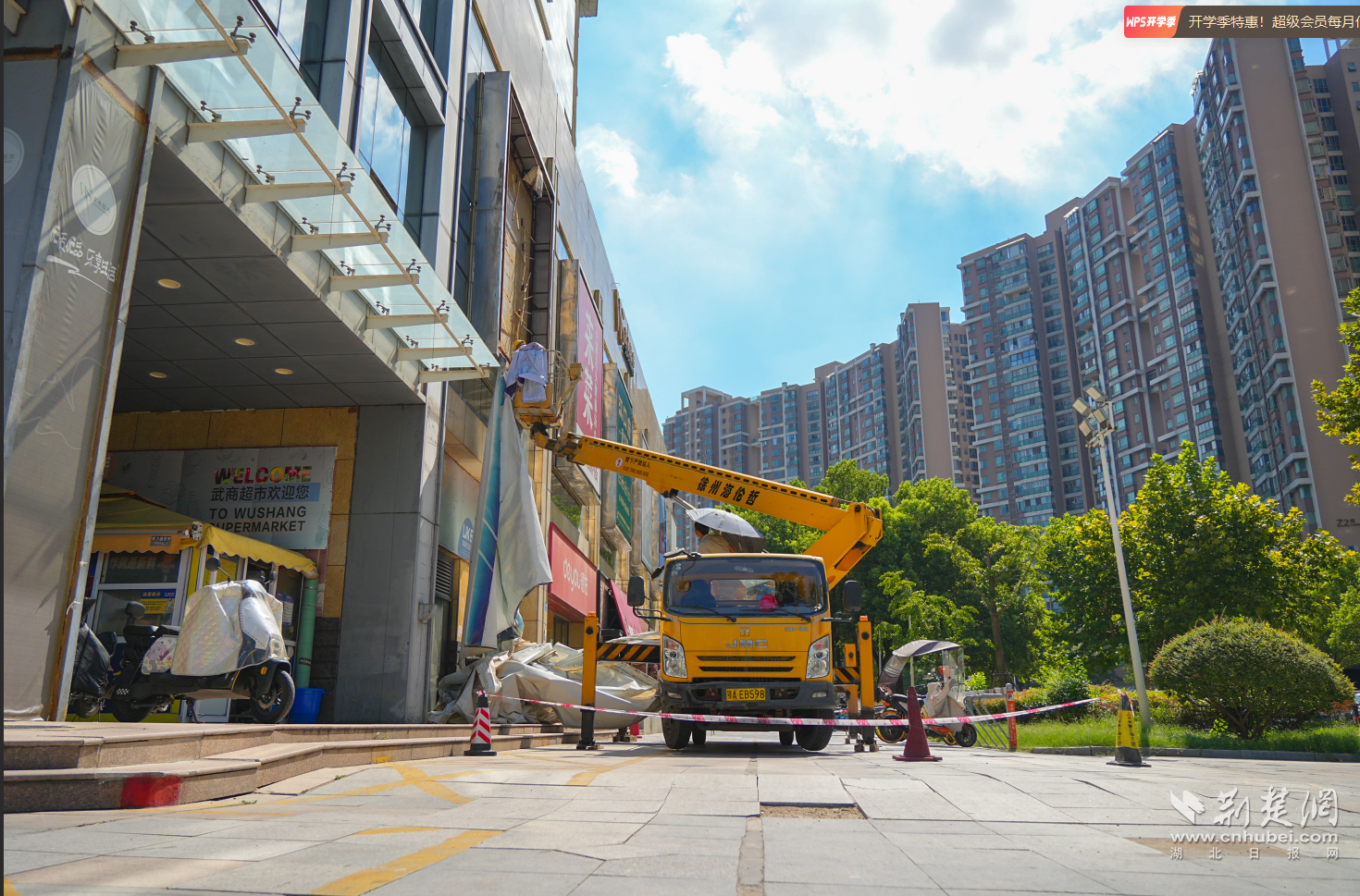 “存在安全隱患的廣告,堅(jiān)決依法拆除,絕不姑息!”8月19日上午,在常青花園中央商業(yè)街武商量販門前,東西湖區(qū)城管執(zhí)法局市政科相關(guān)負(fù)責(zé)人介紹說(shuō)。在現(xiàn)場(chǎng),施工人員正搭乘高空作業(yè)車,對(duì)武商量販外立面的問(wèn)題廣告進(jìn)行一一拆除。據(jù)了解,常青花園中央商業(yè)街人流量大、廣告設(shè)置密集,部分廣告牌因長(zhǎng)期風(fēng)吹日曬出現(xiàn)畫面破損等問(wèn)題,既影響市容環(huán)境,更對(duì)市民安全構(gòu)成潛在威脅。