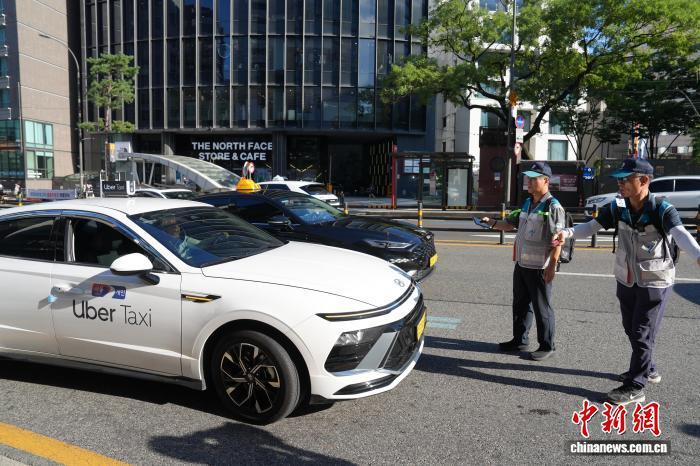 當(dāng)?shù)貢r(shí)間8月22日下午,工作人員在首爾明洞地鐵站附近開(kāi)展針對(duì)出租車(chē)不良營(yíng)運(yùn)行為的整治行動(dòng)。中新網(wǎng)記者 劉旭 攝