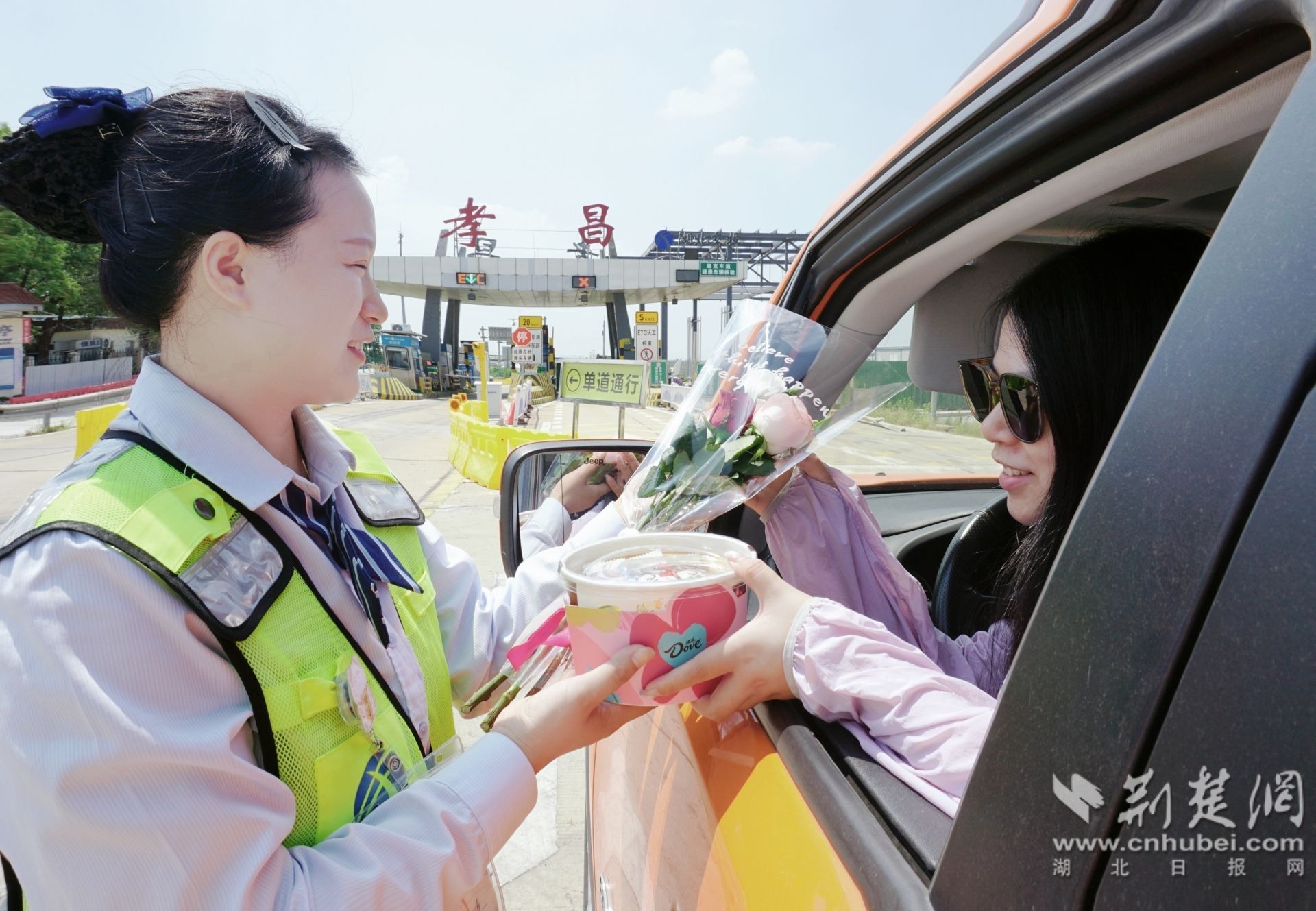 “您好,七夕快樂!”“祝您旅途愉快!”節(jié)日當天,工作人員手持嬌艷的玫瑰花和精美的巧克力,為過往司乘送上節(jié)日驚喜。一位正準備趕赴約會的車主開心地表示:“沒想到在高速路口還能收到這么用心的禮物,頓時覺得這一路特別浪漫!”收費窗口成為傳遞溫情的紐帶。