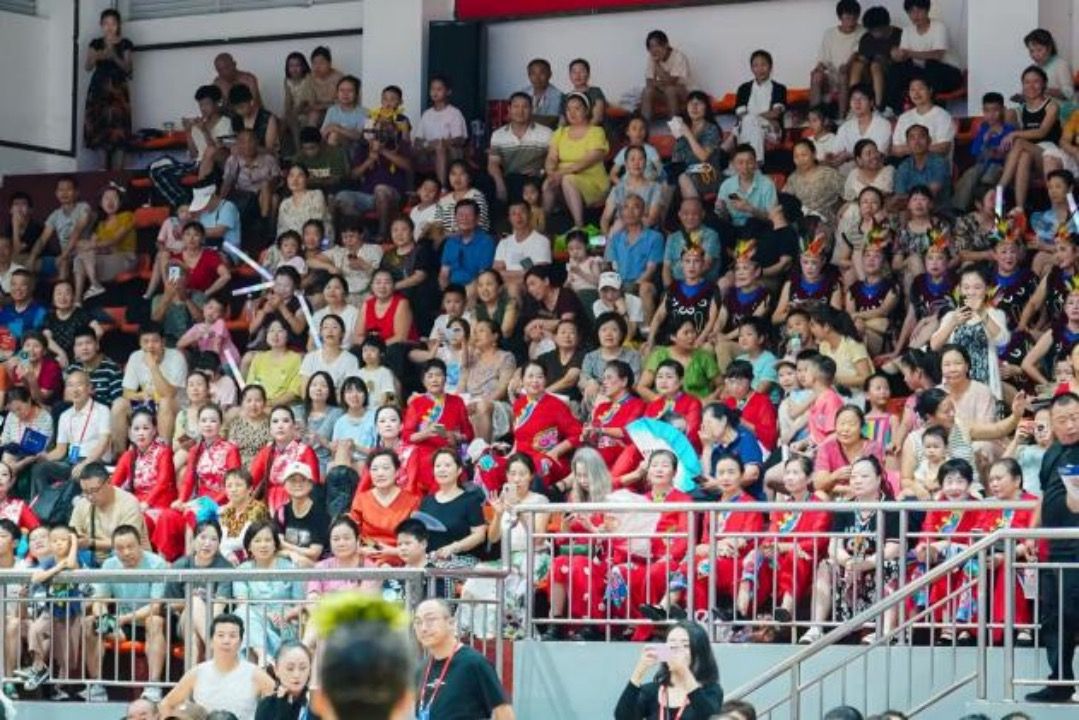 比賽現(xiàn)場,伴隨著《我和我的祖國》《輝煌中國夢》等一首首激昂動聽的旋律,各參賽隊(duì)伍輪番登場。隊(duì)員們精神飽滿、動作整齊,將民族風(fēng)情、時(shí)代氣息與健身元素巧妙融合,用舞步詮釋健康與快樂??磁_上千余名觀眾掌聲不斷,不少群眾舉起手機(jī)記錄精彩瞬間,現(xiàn)場成為一片歡樂的海洋。