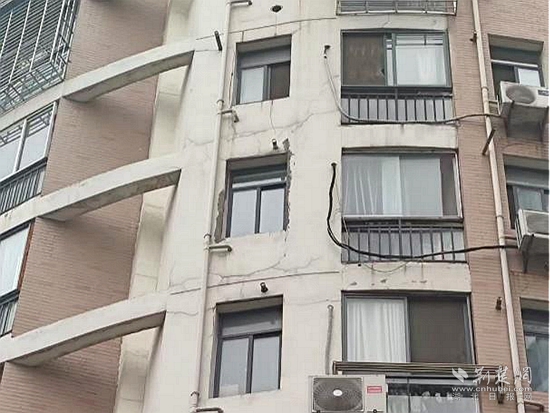 2021年4月,因加氣磚質(zhì)量存在問題,遇水膨脹導(dǎo)致外墻開裂,一道近2米長(zhǎng)的裂縫橫亙樓體,外墻面的水泥塊經(jīng)常脫落,居民出行存在極大的安全隱患。