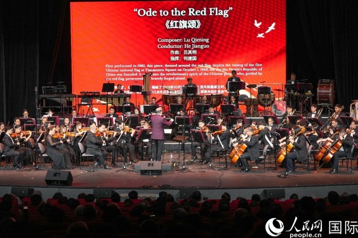 音樂會在大氣磅礴的《紅旗頌》中拉開帷幕。人民網記者 樊帆攝