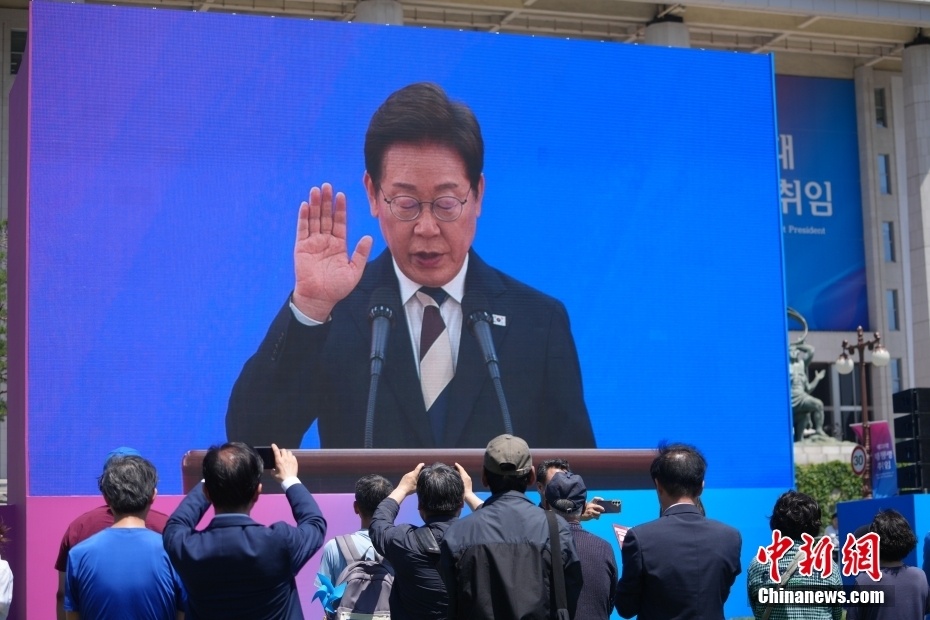 當(dāng)?shù)貢r間6月4日,民眾在韓國首爾汝矣島國會廣場通過大屏幕觀看總統(tǒng)李在明就職儀式。中新社記者 劉旭 攝