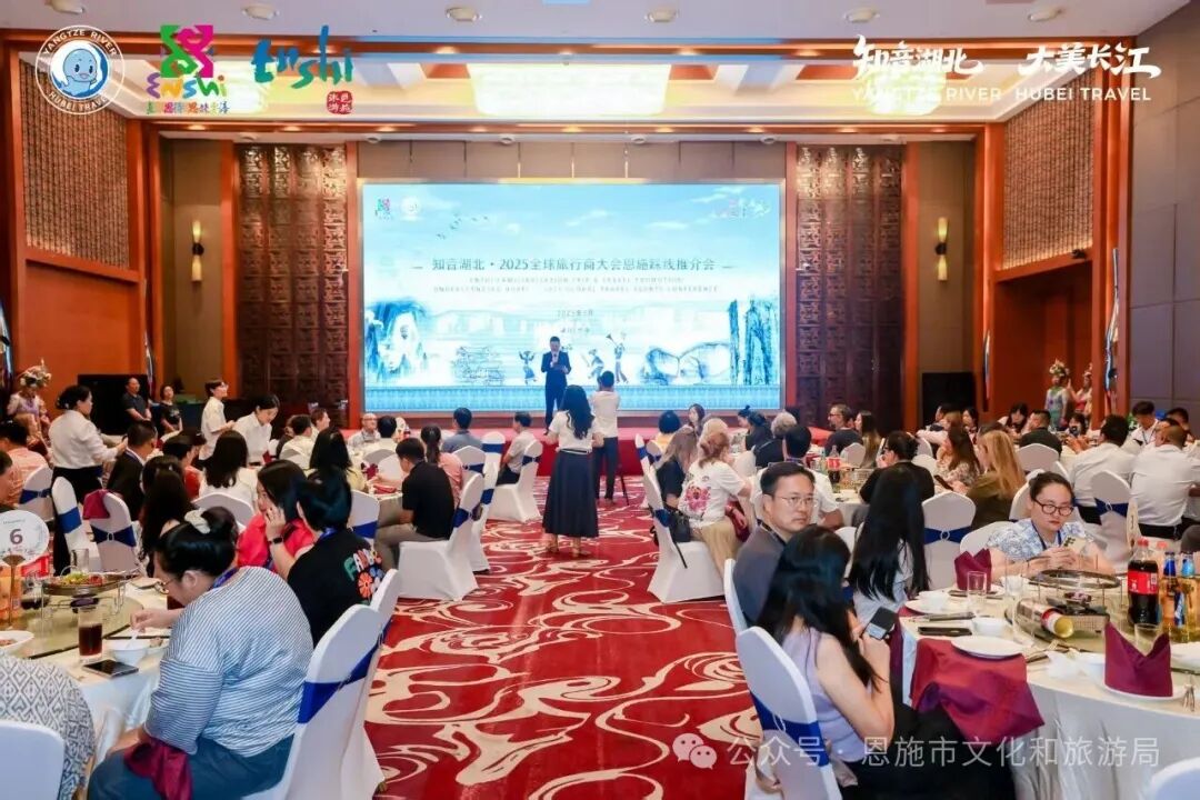 活動期間,精心策劃文旅推介會,精美的文旅宣傳片全方位展示了恩施的自然風(fēng)光、民俗文化、特色美食等,更用國際化的語言介紹了恩施豐富的旅游資源和線路產(chǎn)品。精彩的民族節(jié)目表演更是將活動推向了高潮,讓旅行商們大飽眼福,贏得陣陣掌聲。