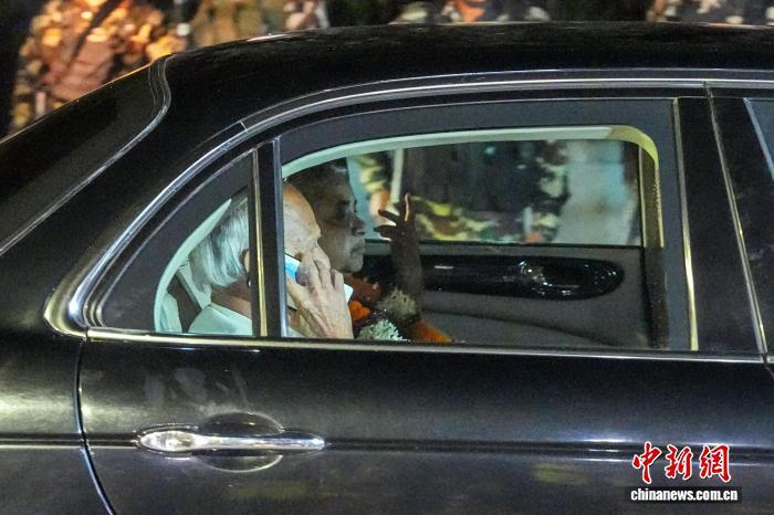 當?shù)貢r間9月12日,尼泊爾臨時政府總理蘇希拉·卡爾基在宣誓就職儀式后乘車離開總統(tǒng)府。中新社記者 崔楠 攝