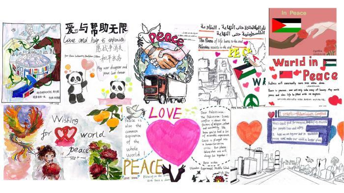 浙江溫州學(xué)生所畫“心繪希望 愛滿加沙”公益作品。(受訪者供圖)