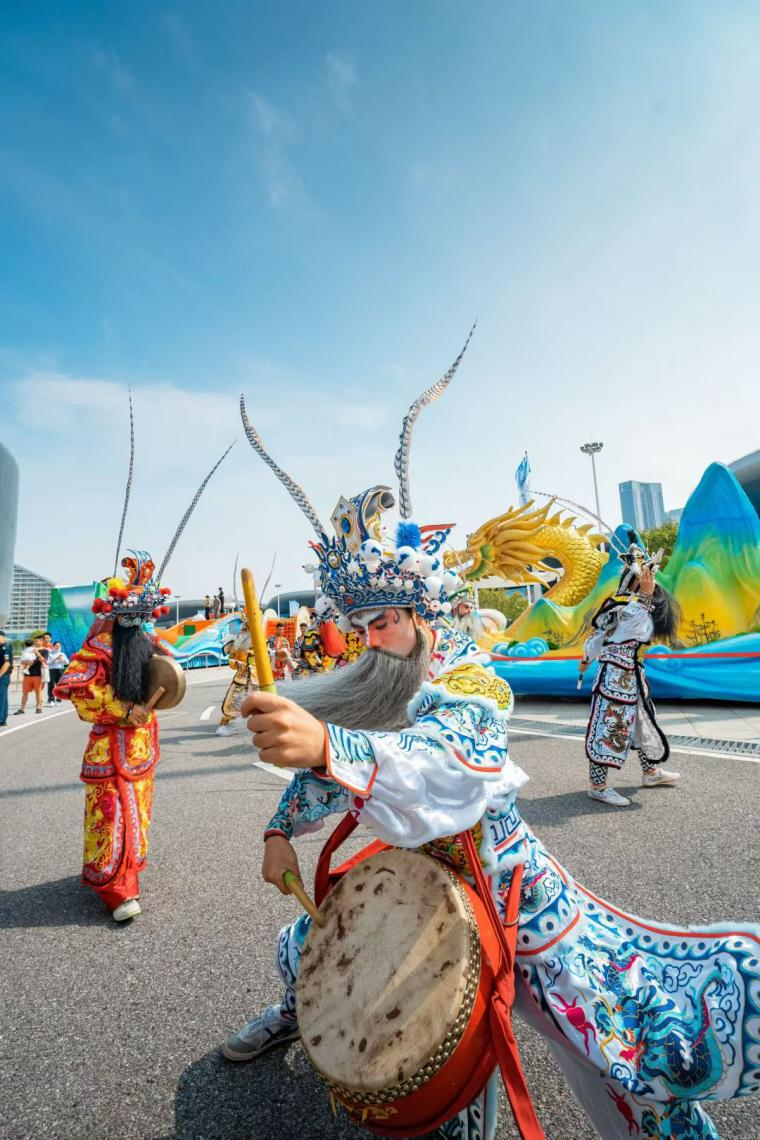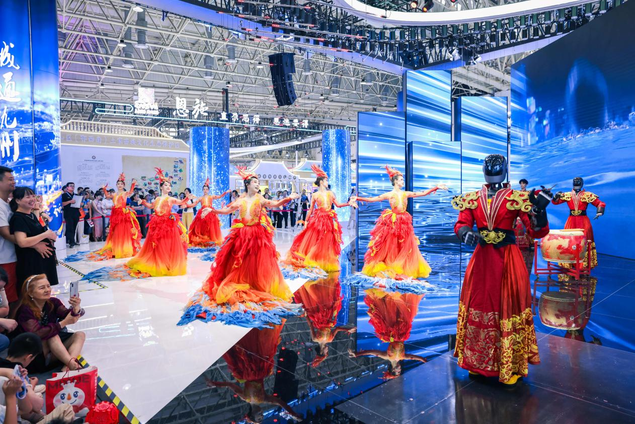 在展館內外可以看到,各展區(qū)人頭攢動,在廣東長隆展區(qū),兩點半的演出還沒開始,人流已經(jīng)里三層外三層打圍。伴著強勁律動,外籍演員們還邀請觀眾共舞互動,現(xiàn)場氣氛爆棚。展館內部,韓國館、陜西館等展位的熱舞、非遺展演成了焦點。多種多樣的智能設備體驗等,更成為小朋友的樂園。