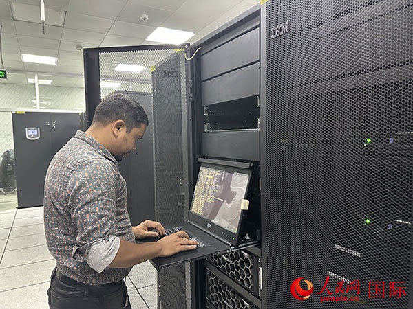 孟加拉國(guó)工程師對(duì)通信網(wǎng)絡(luò)現(xiàn)代化改造項(xiàng)目進(jìn)行維保工作。人民網(wǎng)記者 孫廣勇攝
