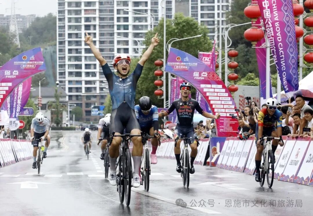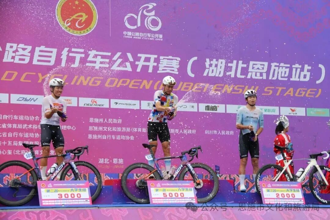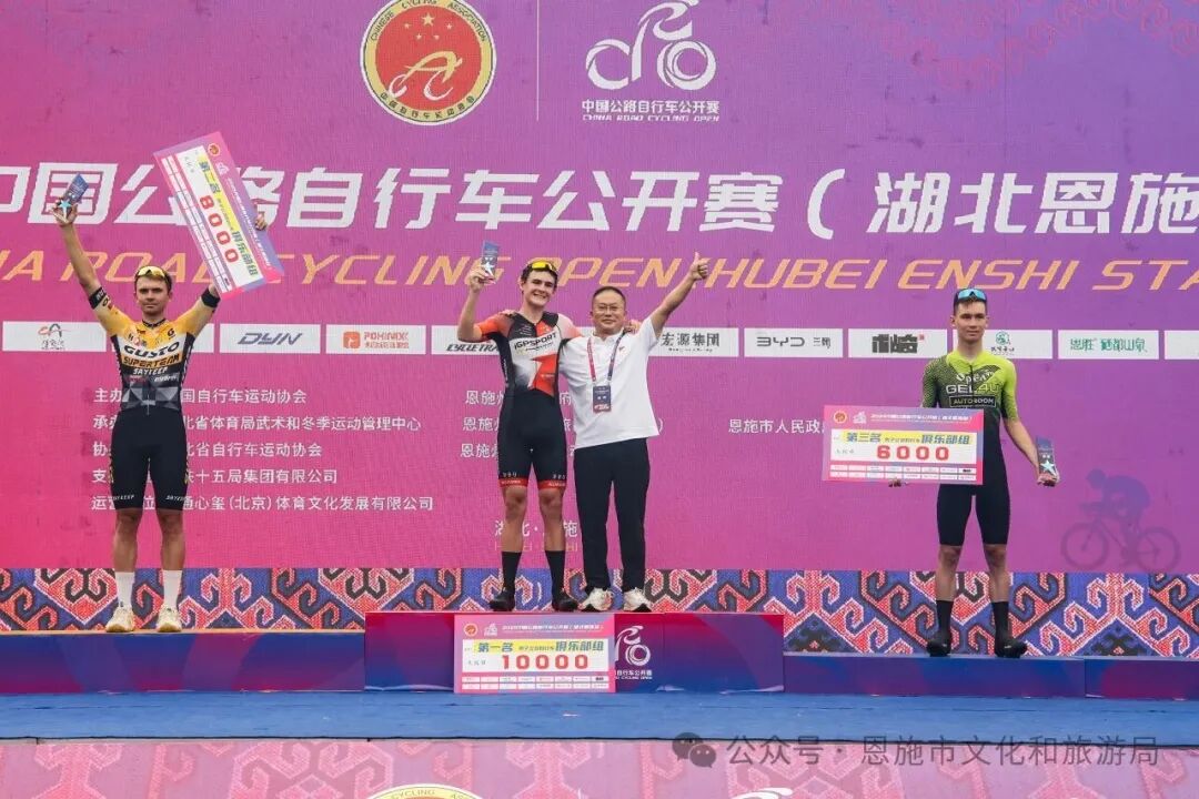 2025年中國公路自行車賽(湖北恩施站)第一賽段所有比賽圓滿結(jié)束,經(jīng)過激烈角逐,跡馳-瑞豹車隊(duì)獲得俱樂部組團(tuán)體積分第一名,來自跡馳-瑞豹車隊(duì)的VLADISLAY SOZINOV最終憑借強(qiáng)勁的沖刺能力摘得桂冠,被授予白衫,來自GUSTO SUPERTEAM車隊(duì)的VITALII和重慶南岸風(fēng)騎捷安特車隊(duì)的BLOKHIN IVAN 分獲二、三名;男子精英組、大學(xué)生組、青少年組及女子精英組冠軍分別由來自恒宇單車的馮浩然、任中昊、DYC-晟亦青訓(xùn)選手方宇軒和Bigrock大石魅騎廠隊(duì)張婷婷獲得。
