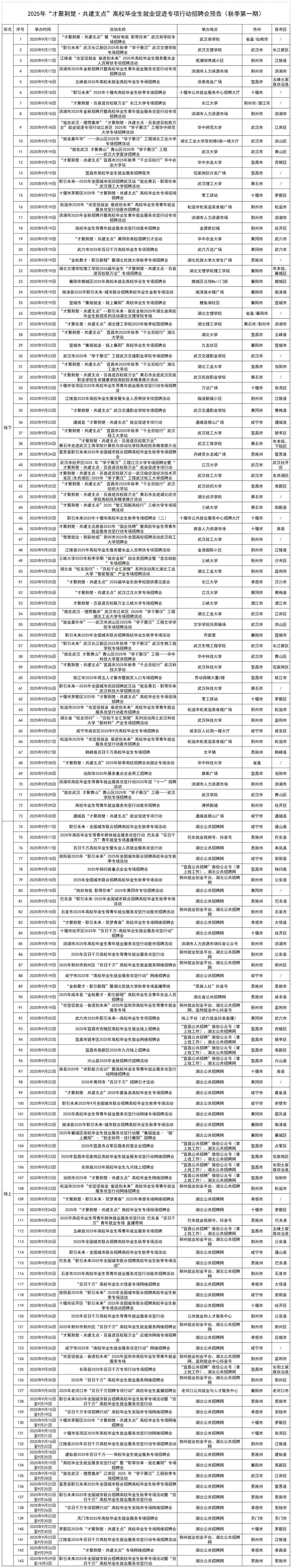 2025年“才聚荊楚·共建支點(diǎn)”高校畢業(yè)生就業(yè)促進(jìn)專項(xiàng)行動招聘會預(yù)告(秋季第一期)