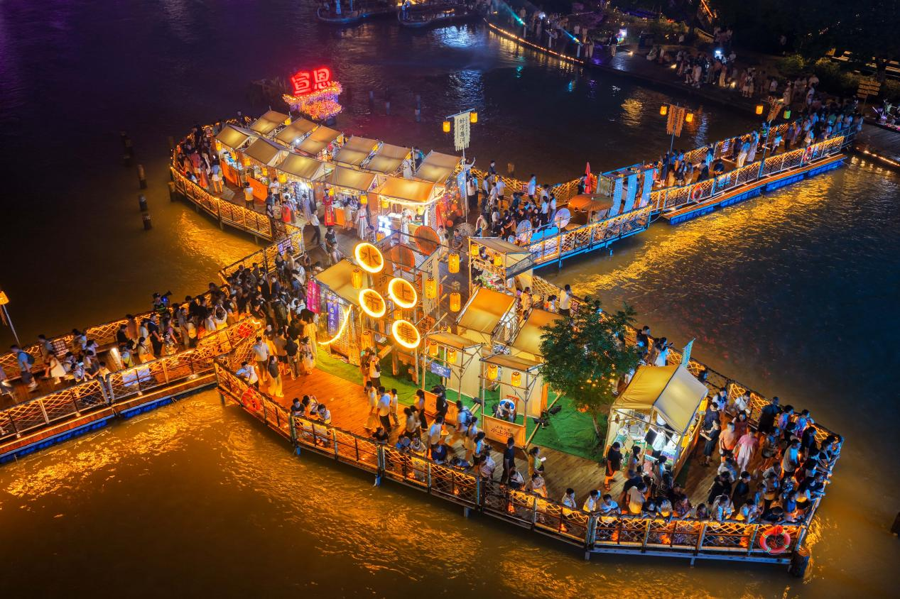 新大集拉動(dòng)新消費(fèi)。9月16日晚19:00至21:00,在恩施州宣恩縣城沿河兩岸開(kāi)設(shè)特色水上市集,商家與NPC以特定古風(fēng)造型進(jìn)行集市售賣(mài)。形式新穎、文化元素突出,深受年輕消費(fèi)者喜愛(ài)。家電、3C數(shù)碼、汽車(chē)等商品集中亮相,以舊換新、專項(xiàng)優(yōu)惠福利、促銷大禮包抽獎(jiǎng)等各類活動(dòng)持續(xù)推出,現(xiàn)場(chǎng)消費(fèi)火熱。