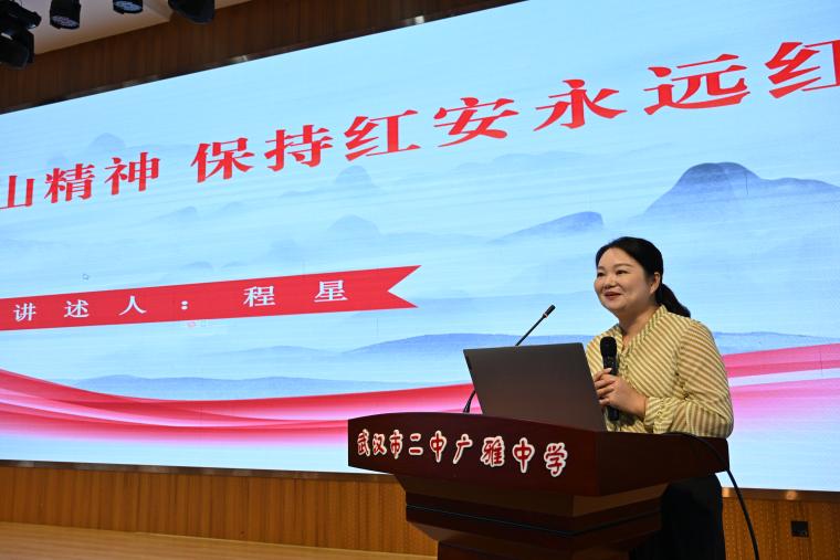 活動在莊嚴肅穆的氛圍中拉開帷幕。第十四屆全國人大代表、黃麻起義和鄂豫皖蘇區(qū)紀念園游客接待中心副主任程星同志帶來專題宣講。結(jié)合十七年深耕紅色文化的實踐,程星以豐富史料為基、鮮活案例為引,系統(tǒng)解讀習近平總書記關(guān)于大別山精神的重要論述,深刻闡釋“堅守信念鑄忠魂、緊跟黨走踐初心、顧全大局顯擔當、團結(jié)奮斗創(chuàng)偉業(yè)、勇當前鋒爭先鋒、不勝不休礪志氣”的精神內(nèi)核,贏得師生陣陣掌聲。