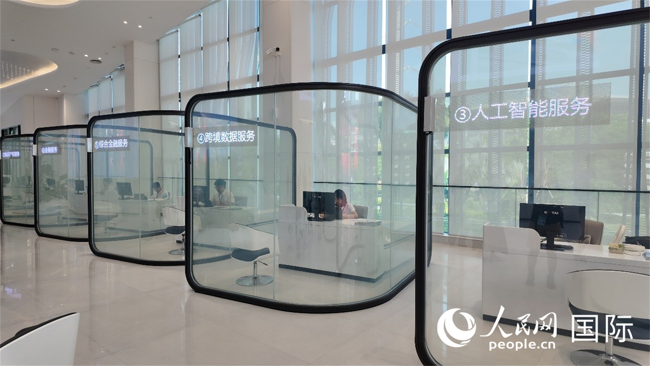 南A中心服務(wù)大廳設(shè)10個(gè)智慧窗口,打造“一站式”國(guó)際人工智能產(chǎn)業(yè)服務(wù)平臺(tái)。人民網(wǎng) 張醴泉攝