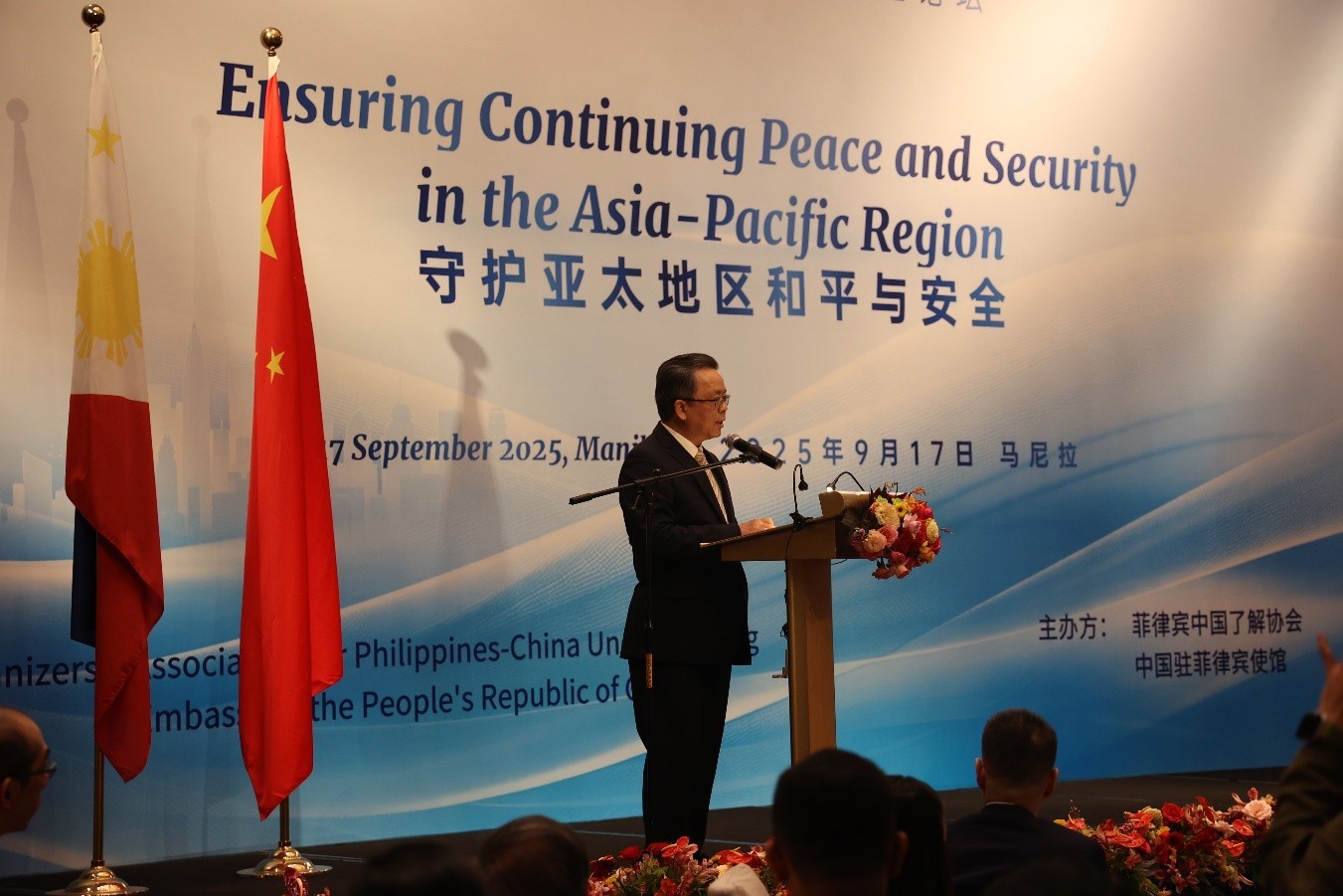 人民網(wǎng)馬尼拉9月18日電 (記者樊帆)9月17日,中國(guó)駐菲律賓使館和菲中了解協(xié)會(huì)聯(lián)合舉辦第十四屆“中菲關(guān)系馬尼拉論壇”,本屆論壇的主題是守護(hù)亞太地區(qū)和平與安全。菲政界、商界、僑界、媒體智庫(kù)及駐菲使團(tuán)代表近300人出席。