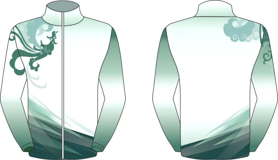 以白色為基色,運用淺綠、翠綠、墨綠不同層次的綠色,呈現(xiàn)鳳鳥“展翅騰飛” 的視覺遞進感。展現(xiàn)了楚文化的獨特精神內(nèi)涵,寓意湖北的繁榮昌盛、技能騰飛的美好未來。