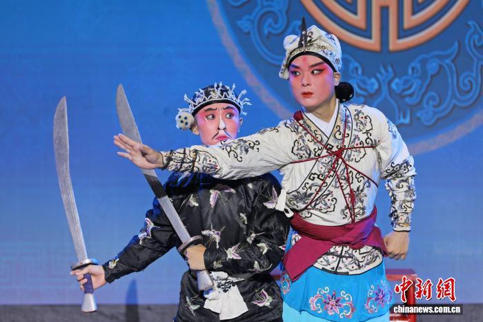 9月23日晚,浙江婺劇團(tuán)雅加達(dá)專場上演。圖為折子戲《三岔口》。中新社記者 李志全 攝