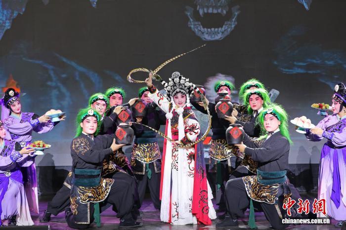 9月23日晚,浙江婺劇團(tuán)雅加達(dá)專場上演。圖為經(jīng)典大戲《三打白骨精》。中新社記者 李志全 攝