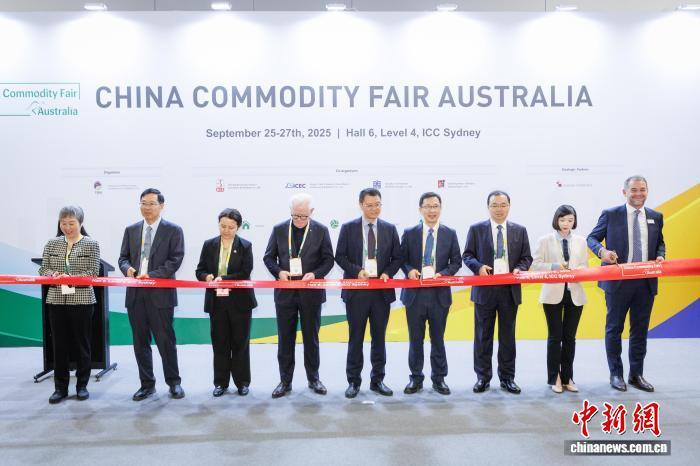 當(dāng)?shù)貢r(shí)間9月25日,第二屆中國(guó)消費(fèi)品(澳大利亞)品牌展在悉尼開幕。圖為中澳嘉賓為展會(huì)開幕剪彩?!≈行律绨l(fā) 中國(guó)商務(wù)部外貿(mào)發(fā)展事務(wù)局 供圖