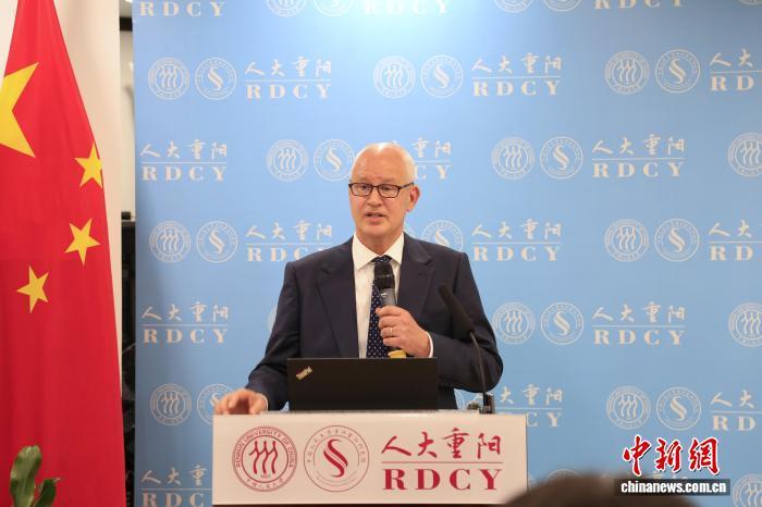 9月25日,英國(guó)駐華大使魏磊(Peter Wilson)在北京出席由中國(guó)人民大學(xué)重陽(yáng)金融研究院主辦的區(qū)域國(guó)別論壇之“大使講壇”活動(dòng)。(主辦方供圖)