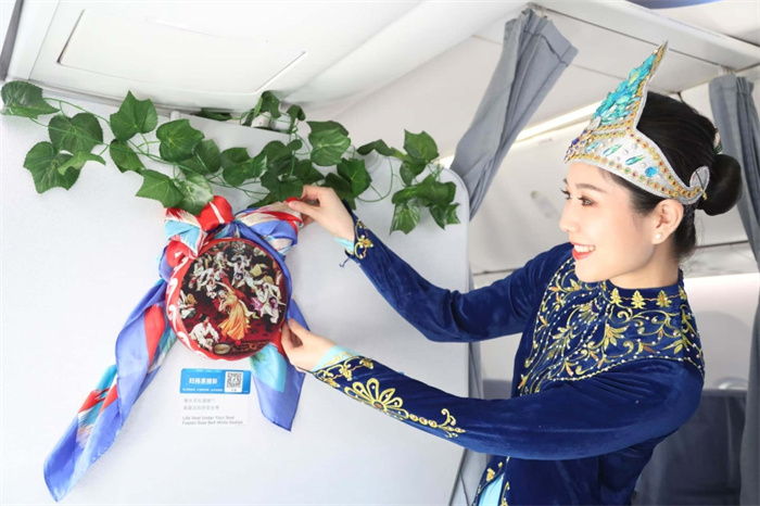 空乘人員擺放紀念復(fù)航陳設(shè)。南方航空供圖
