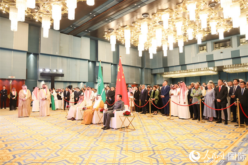 人民網(wǎng)利雅得9月26日電(記者任皓宇)9月25日,中國(guó)駐沙特使館舉行招待會(huì),熱烈慶祝中華人民共和國(guó)成立76周年和中沙建交35周年。沙特利雅得地區(qū)副埃米爾穆罕默德·本·阿卜杜拉赫曼親王、沙內(nèi)政部副大臣阿卜杜勒阿齊茲·阿亞夫親王、沙外交部次大臣賽馬里以及沙政府有關(guān)部門(mén)和軍隊(duì)高級(jí)官員,各國(guó)駐沙使節(jié)和伊斯蘭合作組織代表,沙各界友好人士,在沙中資機(jī)構(gòu)、教師留學(xué)生、華僑華人代表約600人出席。