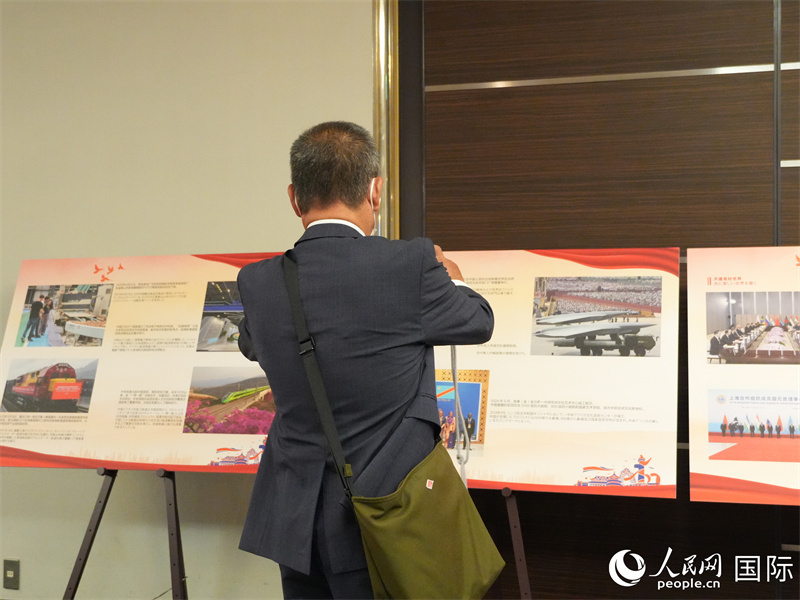 來賓觀看中國人民抗日戰(zhàn)爭、戰(zhàn)后中日關(guān)系恢復(fù)發(fā)展、中國式現(xiàn)代化及兩國重要政治、經(jīng)濟(jì)、文化、科技、人員交往活動圖片視頻,現(xiàn)場氣氛熱烈友好。