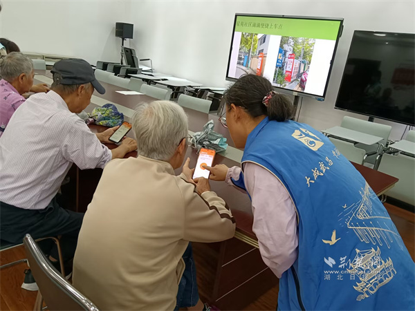 工作人員給老人講解出行軟件使用方法。 通訊員供圖