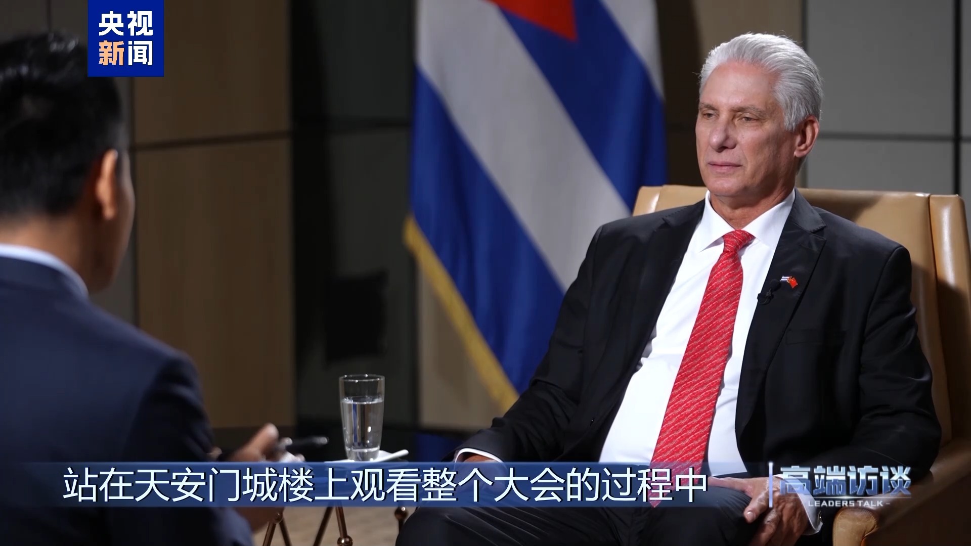 何巖柯:主席先生您好!很高興您再次接受《高端訪談》的專訪。這次來華,您出席了紀(jì)念中國人民抗日戰(zhàn)爭暨世界反法西斯戰(zhàn)爭勝利80周年大會。我注意到在大會之后您第一時間在社交媒體上寫下了自己的感受。您說,“中國引領(lǐng)捍衛(wèi)多邊主義與全球治理的斗爭,古巴為支持并踐行這些理念而自豪,并且榮幸出席紀(jì)念活動”。所以首先想請您來分享一下,站在天安門城樓上觀看整個大會的過程中,您是一種什么樣的感受?