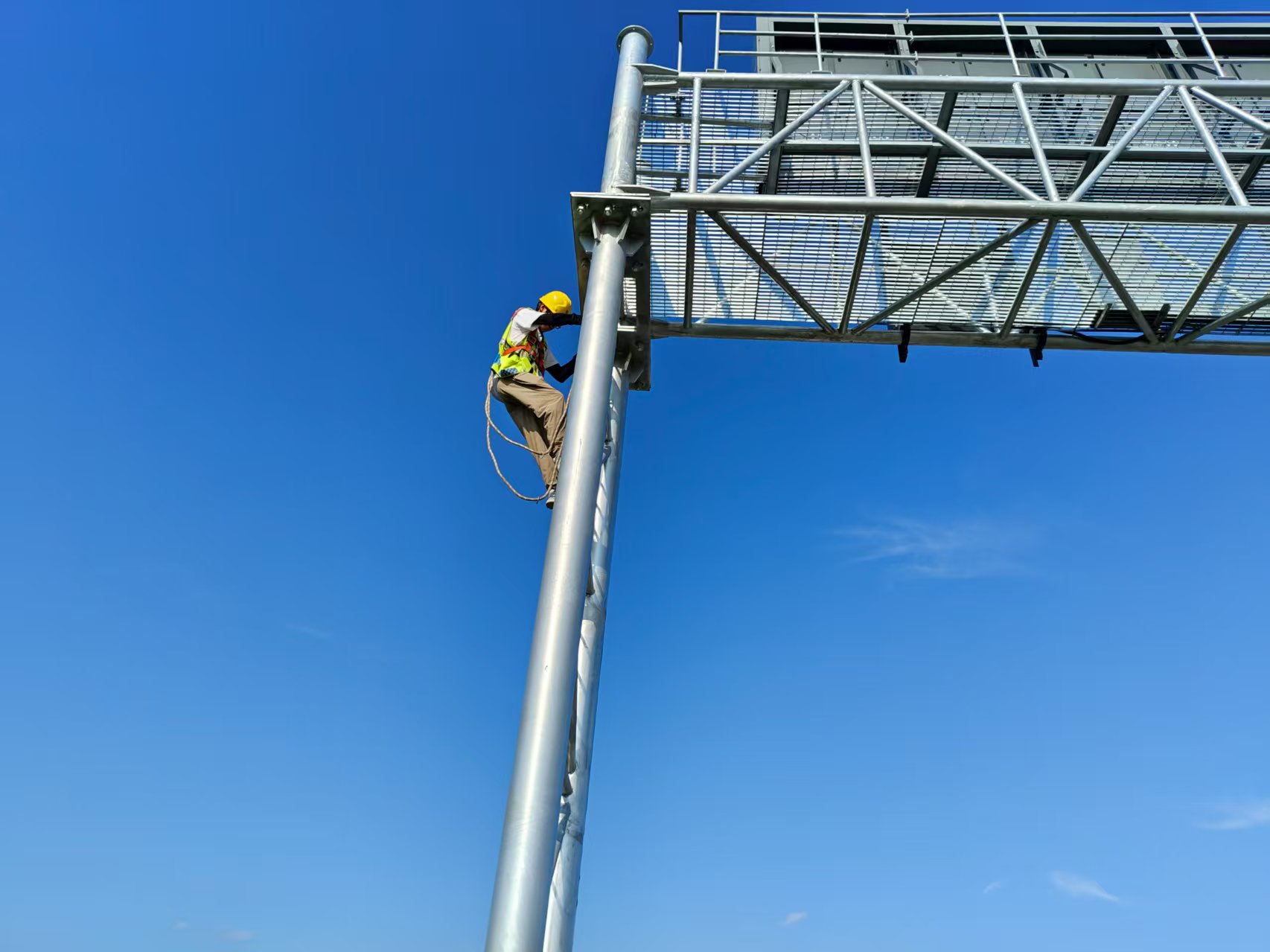 ETC門架、機電設(shè)施是高速運營的“神經(jīng)中樞”,直接關(guān)系道路通行效率。9月下旬,機電管理員彭龍系緊安全繩,順著檢修梯爬上孝漢應(yīng)高速ETC門架,手持檢測儀逐項排查網(wǎng)絡(luò)信號、設(shè)備運行狀態(tài)?!岸嗖橐淮?,雙節(jié)通行就多一份保障?!彼林~頭的汗說,僅3天時間,團隊已完成轄區(qū)內(nèi)20余座門架的全面檢查維護。