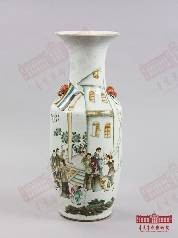 在辛亥革命博物院的展廳里,一件民國粉彩五色旗新時(shí)裝人物圖詩文獅耳撣瓶總能吸引不少參觀者駐足。這是典型的民國時(shí)期景德鎮(zhèn)窯制品,撇口處描金細(xì)膩精致,獅耳紋飾鮮活靈動,瓶身踏春圖景里,人物衣著巧妙融合傳統(tǒng)紋樣與當(dāng)時(shí)新風(fēng)尚,洪步余先生于瓶身題寫的“最愛晴和春景好,勸邀同伴踏春回”,墨色飽滿厚重。武昌的槍聲擊碎了封建帝制的枷鎖,這件撣瓶正是那個(gè)變革時(shí)代的“見證者”。辛亥革命之后,中國不僅迎來政治制度的新生,人們的思想與生活也踏上革新之路,彼時(shí)的中國正帶著這份勇氣,以開放姿態(tài)嘗試融入世界發(fā)展潮流。