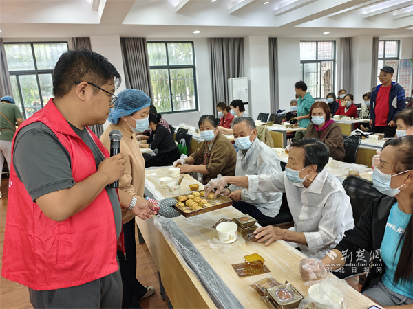 解放橋社區(qū)居民品嘗烘焙的月餅。 通訊員供圖