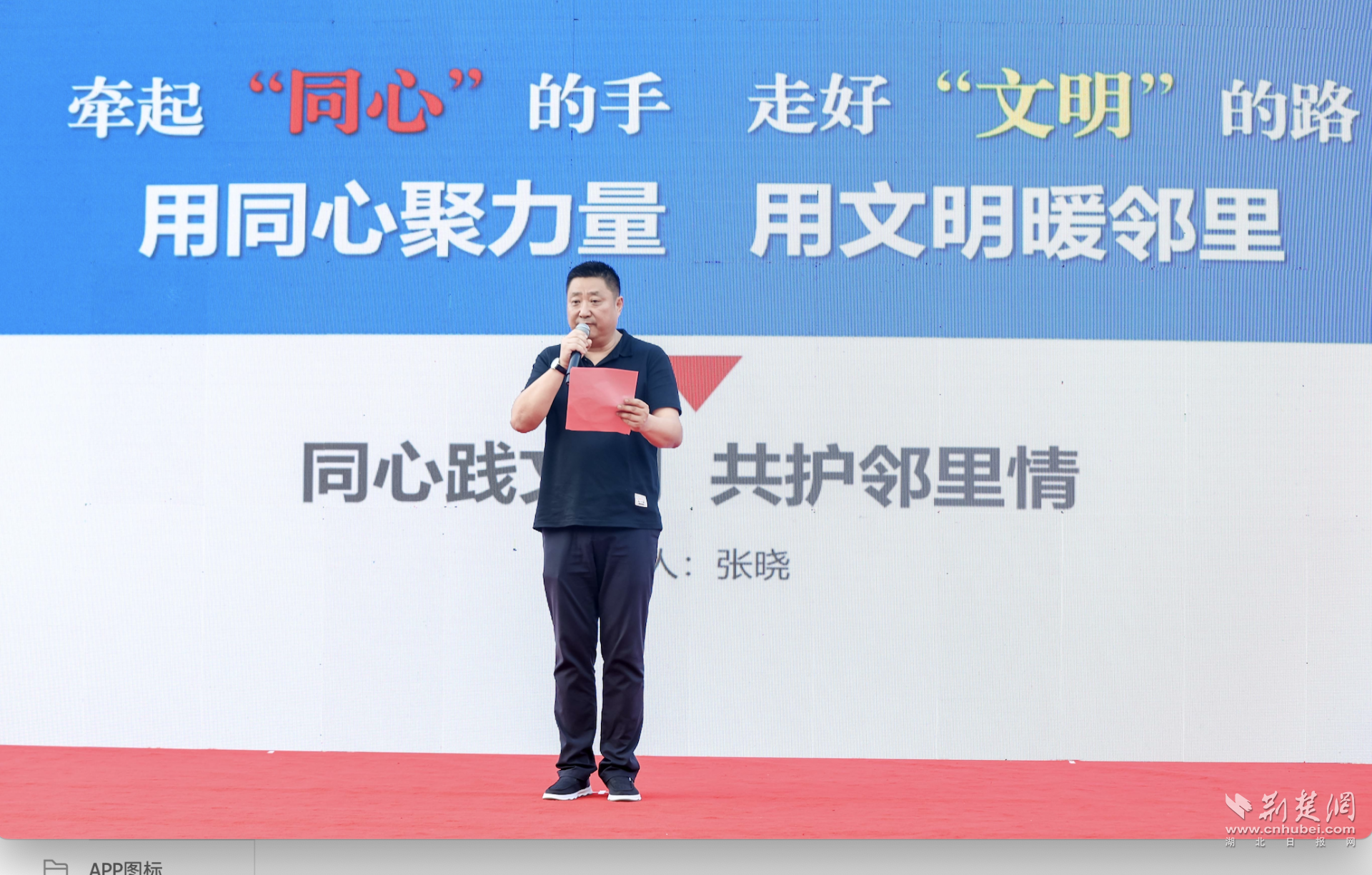 活動特別設(shè)置了文明微宣講環(huán)節(jié)。2022年第三季度“湖北好人”、2023年武漢市首屆“同心奮斗者”張曉分享了他的文明實踐故事。作為漢陽區(qū)新的社會階層人士聯(lián)誼會副會長、漢陽區(qū)清露社會工作服務(wù)中心主任,張曉以《同心踐文明 共護鄰里情》為題,講述了在日常生活中踐行文明理念的點滴經(jīng)歷。