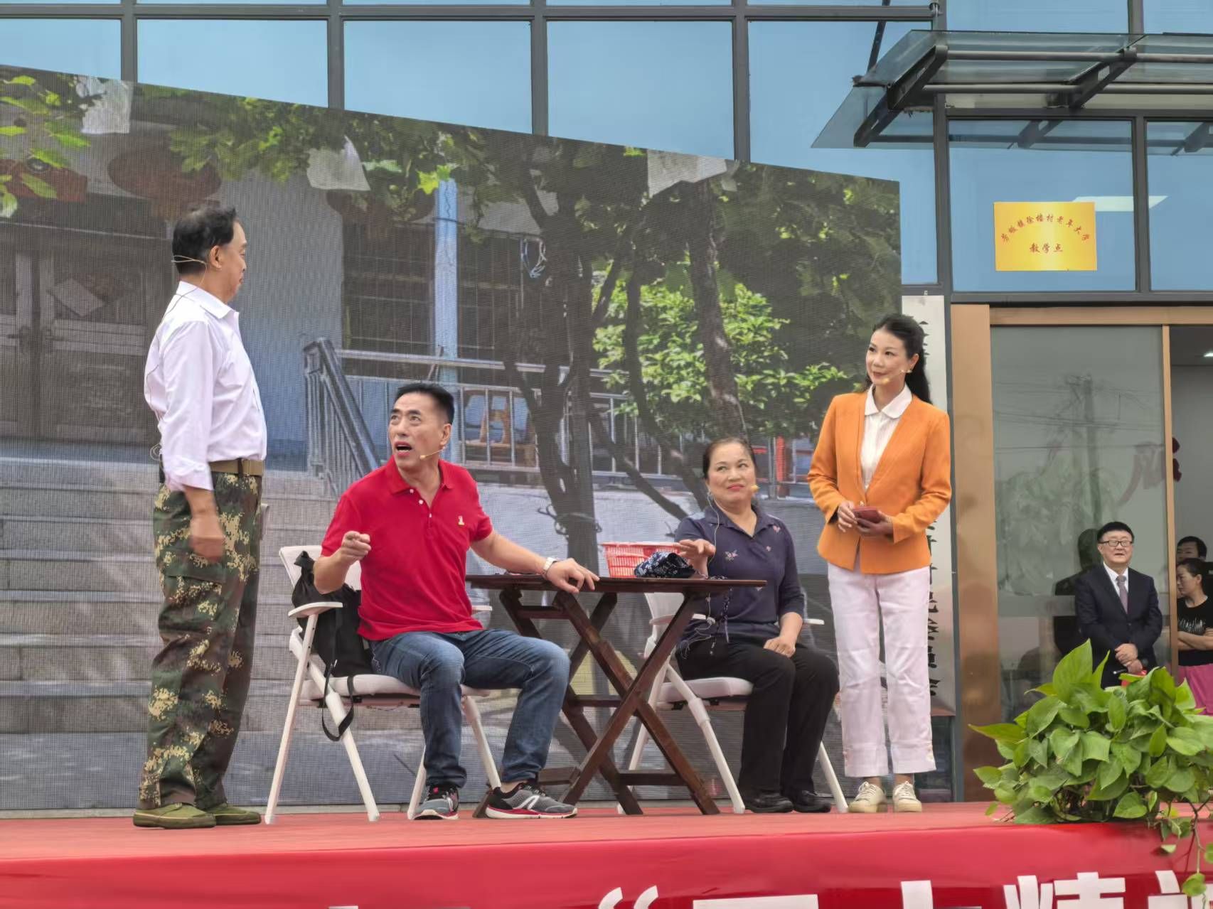省老年大學(xué)藝術(shù)團的團員們用飽滿的熱情和精湛的表演,充分展現(xiàn)了新時代老年人老有所為、老有所樂的健康風(fēng)采和尊老敬老、愛國愛鄉(xiāng)的傳統(tǒng)美德。由于天氣原因,新時代文明實踐站的志愿者們?yōu)檠莩鋈藛T和觀演群眾搭建雨棚、準(zhǔn)備雨傘,泡好姜茶,現(xiàn)場一位年過七旬的徐大爺激動地說:“省里的藝術(shù)家能來到我們家門口表演,真是好啊,這些年輕人也熱心,心里特別暖和!”