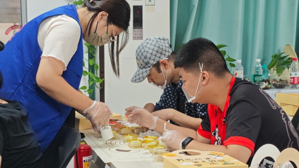 街道陽光家園學員與愛心志愿者一起制作冰皮月餅。 通訊員供圖
