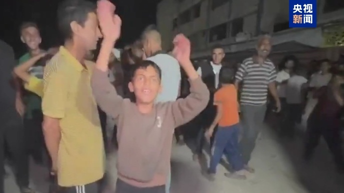 △哈馬斯提交對“20點計劃”的回應(yīng)后,加沙民眾走上街頭進行慶祝