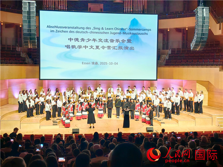 人民網(wǎng)埃森10月10日電 (記者郭梓云)陣陣歌聲優(yōu)美真摯,民族服飾明艷靚麗,隨歌而舞熱情洋溢……近日,德國伯樂中文合唱團和云南大學(xué)及其附屬中學(xué)的同學(xué)們在德國埃森音樂廳舉行了中德青少年交流音樂會暨“唱歌學(xué)中文”夏令營匯報演出,無論是流行歌曲,還是經(jīng)典民歌,中德雙方同學(xué)都一一默契演繹,令現(xiàn)場觀眾感受到跨越國界的友誼和感動。