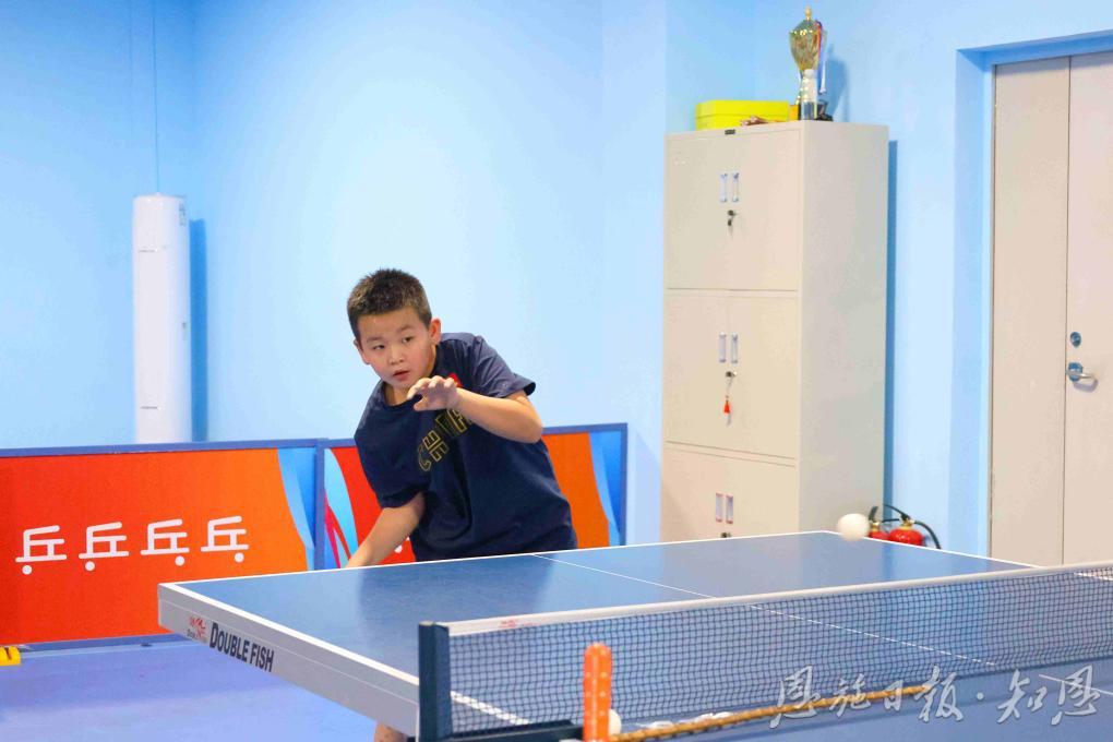黃宇澤正在進(jìn)行乒乓球訓(xùn)練。(全媒體記者盧樹(shù)彬 攝)