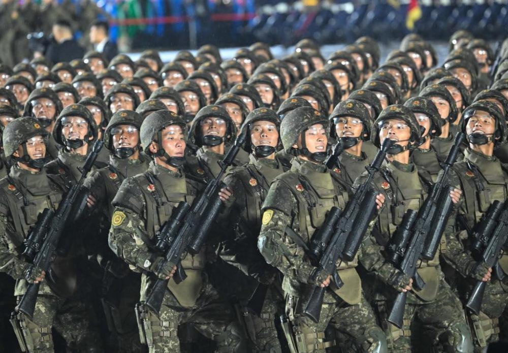 10月10日晚,朝鮮在首都平壤市中心的金日成廣場舉行盛大閱兵式,慶祝朝鮮勞動黨成立80周年。朝鮮勞動黨總書記、國務(wù)委員長金正恩在閱兵式上發(fā)表講話。多國政要出席閱兵式。