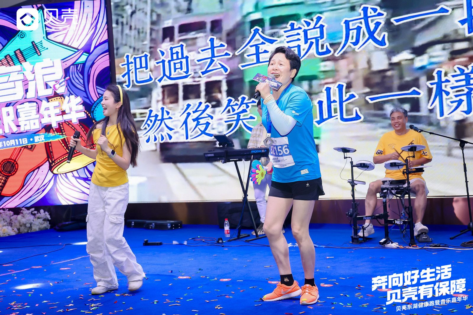 熱干面樂隊率先登場,熟悉的“漢話”旋律一響,立刻點燃全場熱情,跑者們跟著節(jié)奏齊聲大合唱,歌聲此起彼伏。樂隊還特意邀請剛跑完步的選手上臺,大家不分彼此,一起對唱經典曲目,時而互動打趣,時而跟著節(jié)拍跳舞,汗水未干的臉上滿是笑容,將運動后的快樂與音樂的狂歡完美融合。