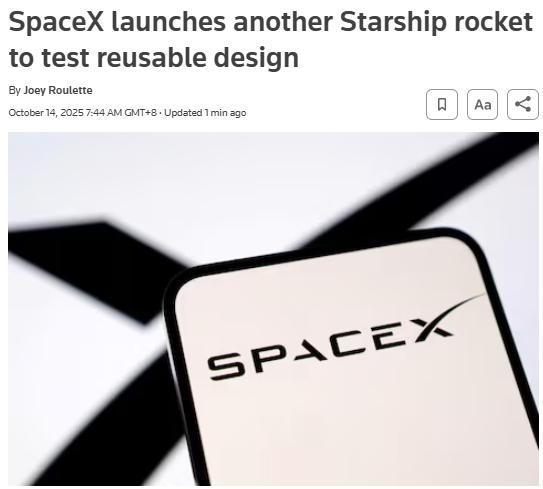中新網(wǎng)10月14日電 據(jù)路透社報(bào)道,當(dāng)?shù)貢r(shí)間13日,美國太空探索技術(shù)公司(SpaceX)新一代重型運(yùn)載火箭“星艦”從得克薩斯州發(fā)射升空,實(shí)施第11次試飛。