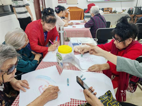 “香遇畫時光”主題日聚焦心理關(guān)懷,提供自然風景、幾何圖案等多元主題線稿,搭配植物精油香薰營造療愈氛圍。志愿者化身“心理陪伴員”,指導握筆涂色技巧,與老人嘮家常、分享生活故事?;顒硬粌H豐富了老年人的精神生活,更通過藝術(shù)療愈延伸至心靈慰藉,為構(gòu)建老年友好型社區(qū)注入新活力。