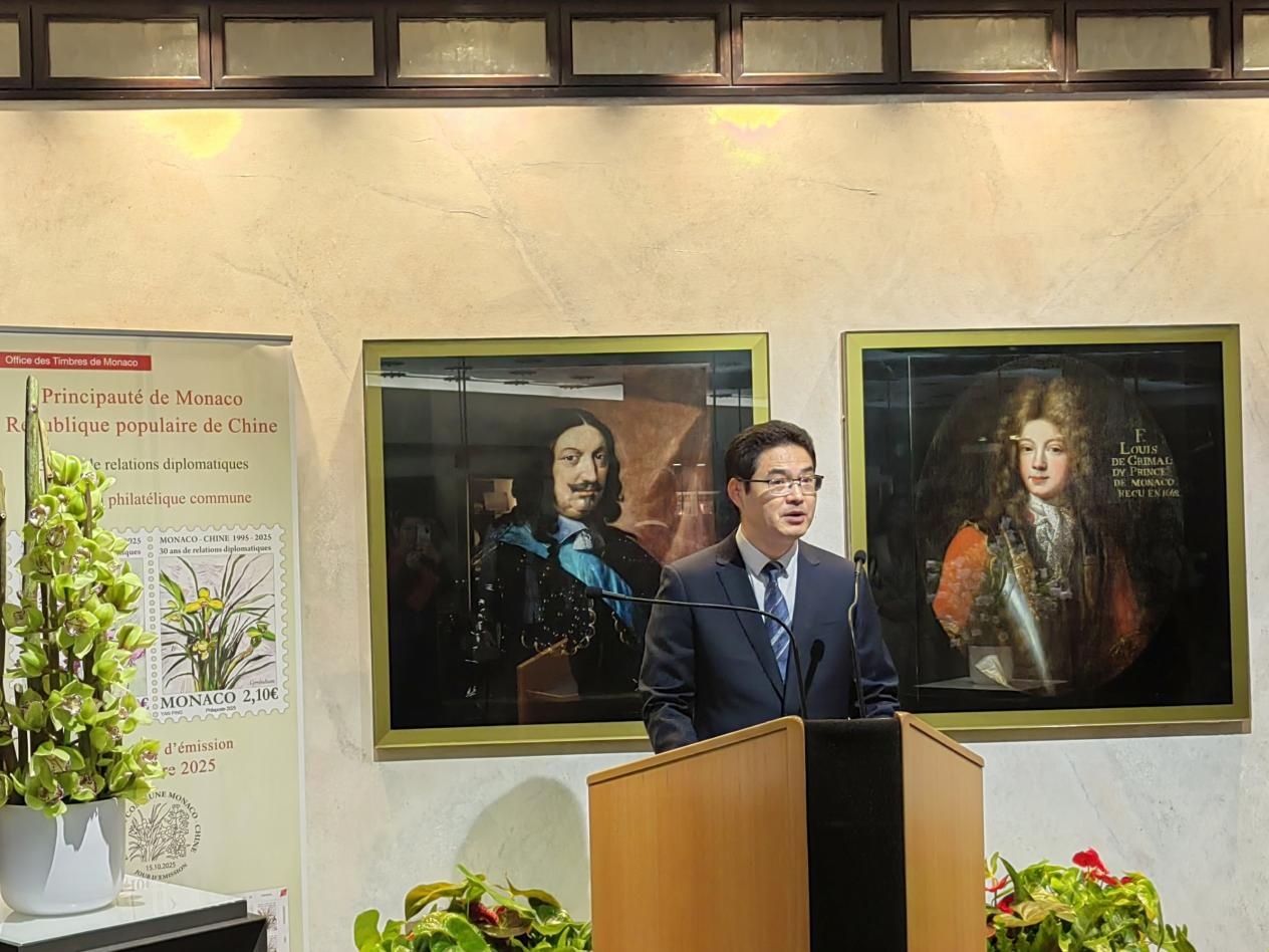 何有麟在致辭中指出,紀(jì)念郵票以中國(guó)春蘭和摩納哥風(fēng)鈴草并蒂成圖,體現(xiàn)了雙方在生態(tài)保護(hù)和可持續(xù)發(fā)展等方面的共同理念,象征兩國(guó)人民的深厚友誼。