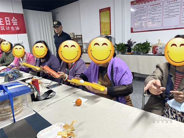 互動(dòng)游戲后,生日蛋糕緩緩?fù)苼?,全場人員齊聲高唱《生日快樂歌》。長者們圍坐在一起,閉眼許愿,共同吹滅蠟燭,隨后開心地分享著甜蜜的蛋糕,每一口都飽含著社區(qū)的關(guān)懷與鄰里間的情誼。