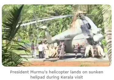 中新網(wǎng)10月22日電 據(jù)《印度時報》報道,印度總統(tǒng)穆爾穆于當(dāng)?shù)貢r間21日開啟對印度南部喀拉拉邦為期四天的正式訪問。22日,其乘坐的直升機(jī)在降落至當(dāng)?shù)匾惑w育場的直升機(jī)坪時發(fā)生意外,部分地面在機(jī)輪觸地后突然下陷。