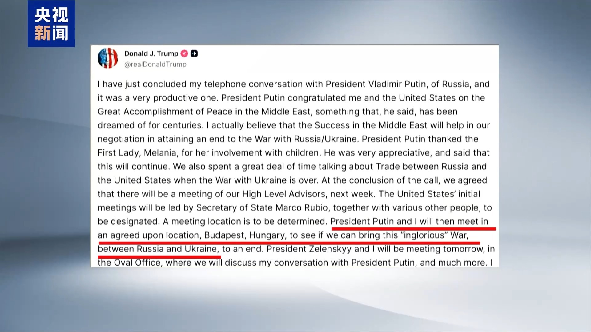 美國總統(tǒng)特朗普16日曾在社交媒體上發(fā)文說,他將與普京在布達(dá)佩斯舉行面對面會(huì)晤。但他沒有提及兩人會(huì)晤的具體日期。